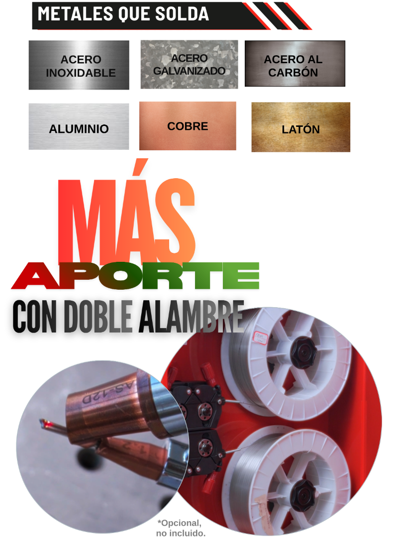 La soldadora láser RECI solda diversos metales como: Acero inoxidable, carbón, galvanizado, aluminio, cobre, latón; además de contar con opción de doble alambre de soldadura para mayor aporte y un cordón más grueso.